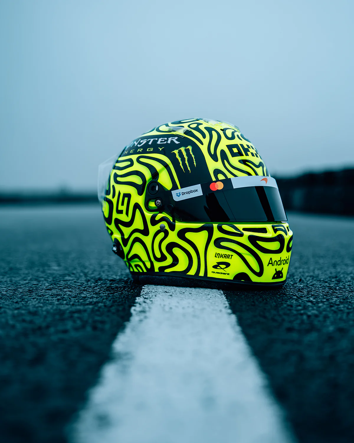 Images are of Lando's full scale 2026 helmet finer details, sponsor logos and their position may vary on the replicas. The video shown is of the 2024 Season Mini, and is provided only as a reference for size, packaging, and movement.