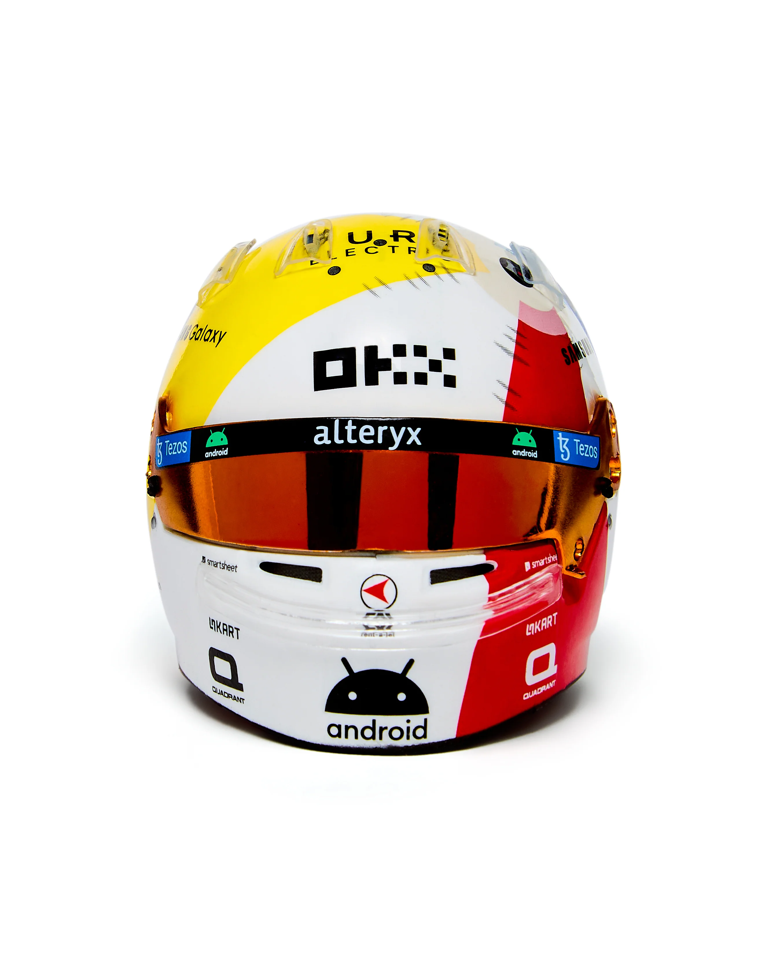 For the very first time we’re launching a 1:5 Scale Helmet. Made by Spark, this is a tiny version of the helmet Lando races on-track. The visor moves up-and-down and it features the same design as Lando’s race helmet.